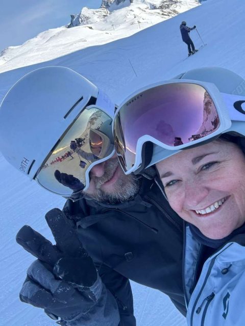 [Caption: Sara and Jonathan hit the slopes in Val d’Isère]
