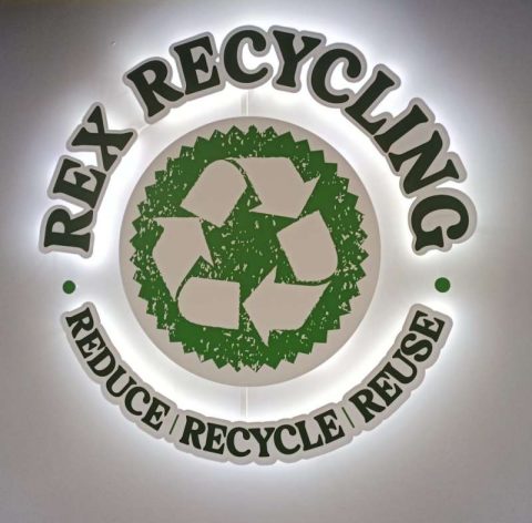 [Caption: Custom made halo-lit acrylic logo sign produced by us for Rex Metal Recycling]