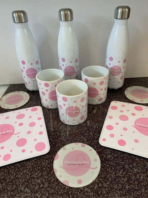 We can print your branding on a variety of promotional products: pens, pencils, notebooks, mugs, water bottles, tote bags, t-shirts, badges, keyrings, lanyards, stress balls, mouse mats, coasters and more.